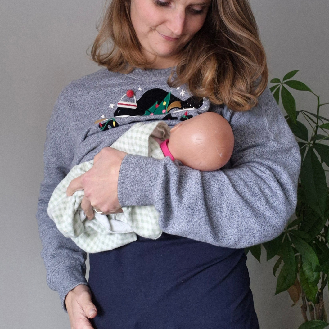- Wear under *any* shirt for stomach coverage when you lift your top to feed on demand